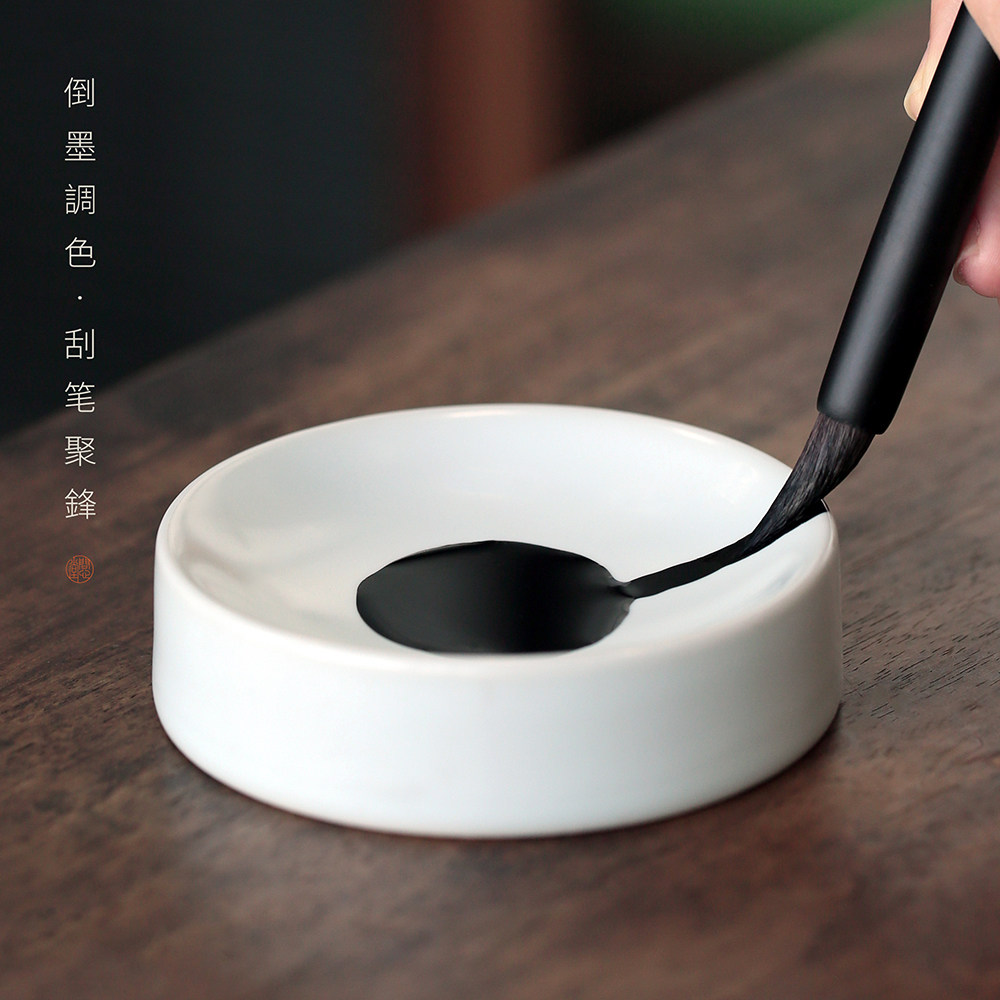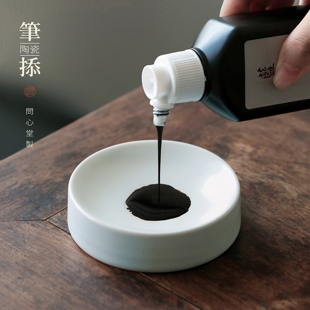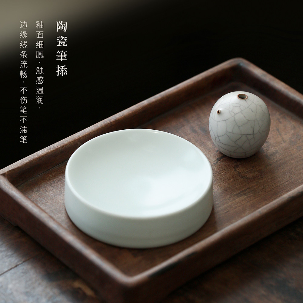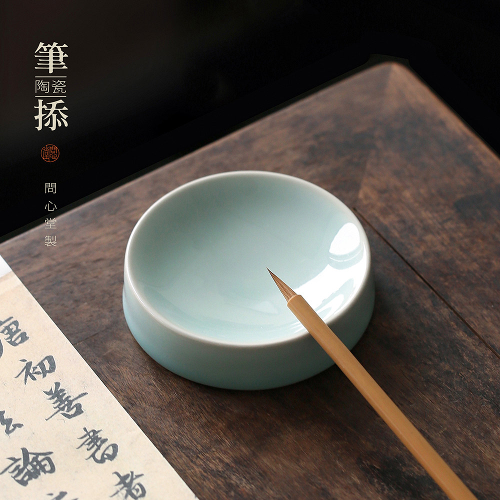 问心堂青白陶瓷笔掭墨碟小楷墨盒初学者书法国画笔掭文房雅器