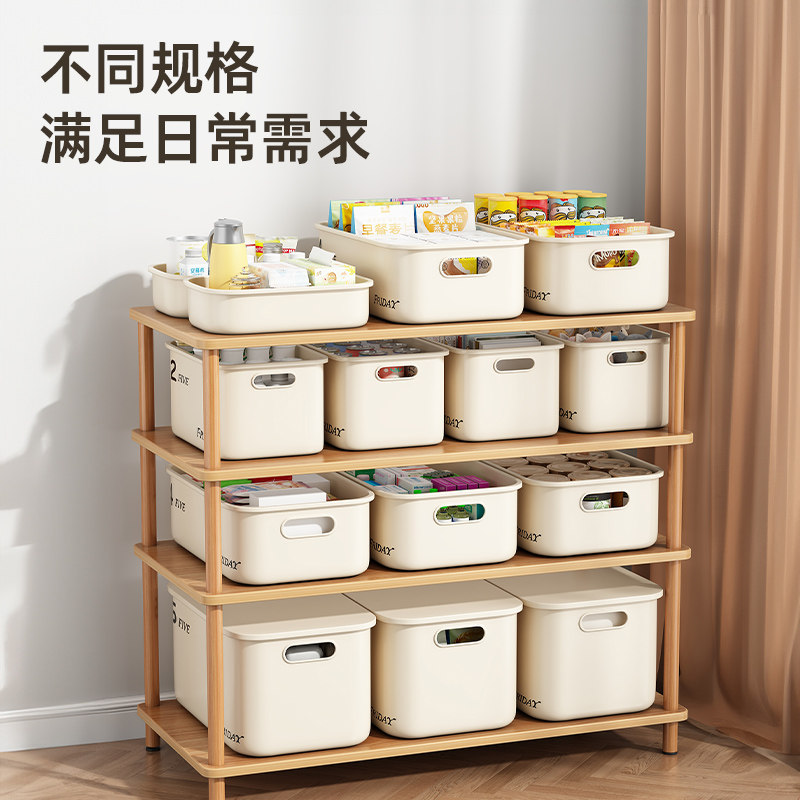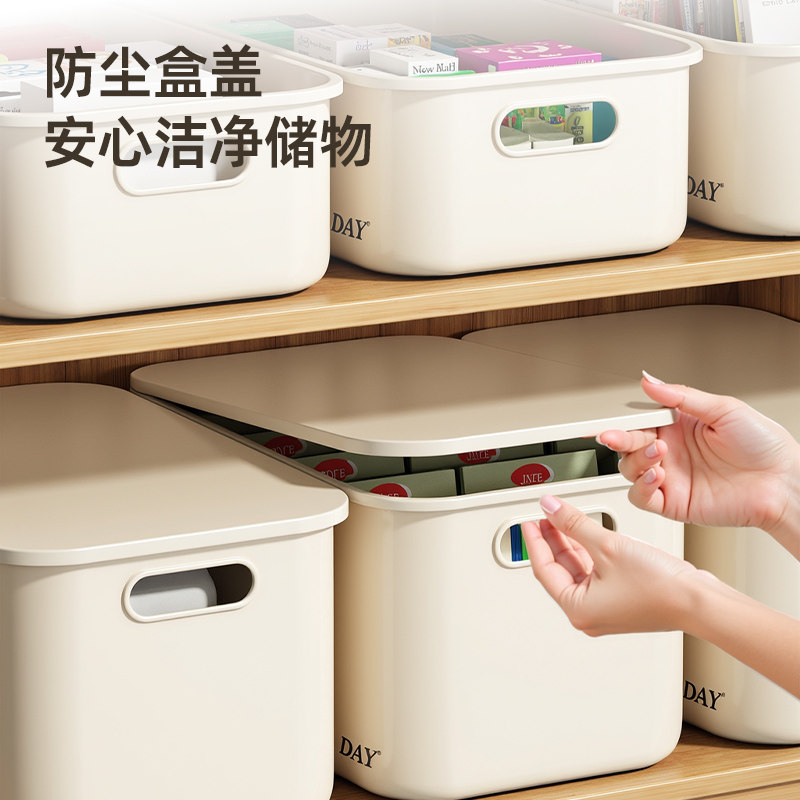 桌面收纳盒长方形零食化妆品杂物塑料整理盒带盖家用储物收纳箱子