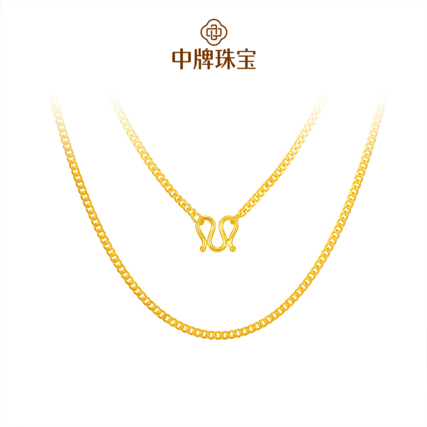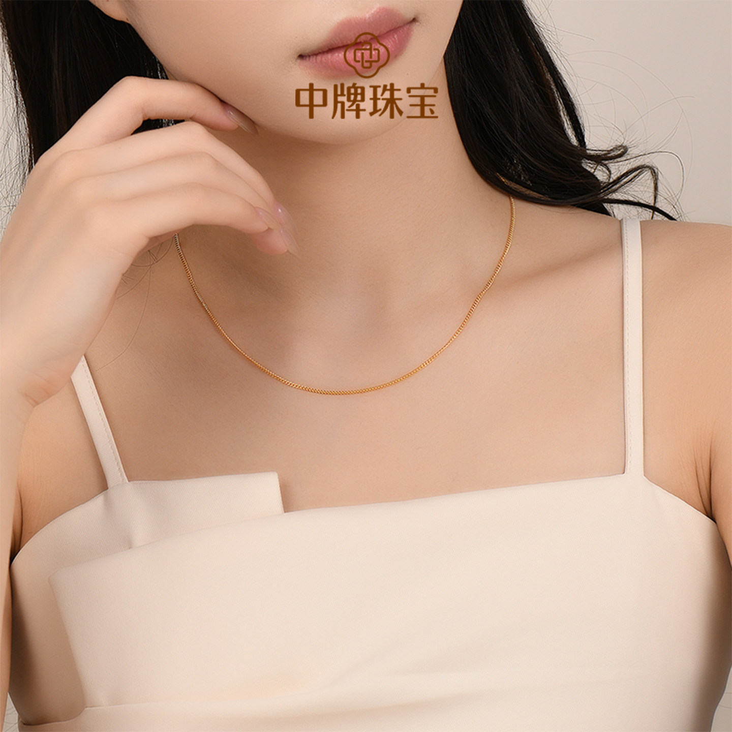 黄金项链足金素链纯金侧身链M扣锁骨链吊坠百搭颈链女款2026新款