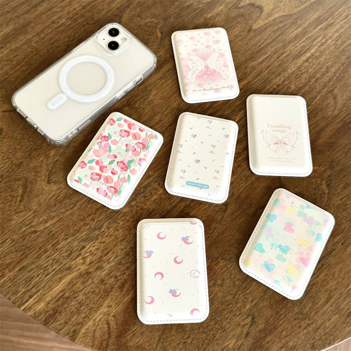 原宿ins风适用磁吸卡包MAGsafe苹果iPhone背贴可爱个性饭卡插卡套定制