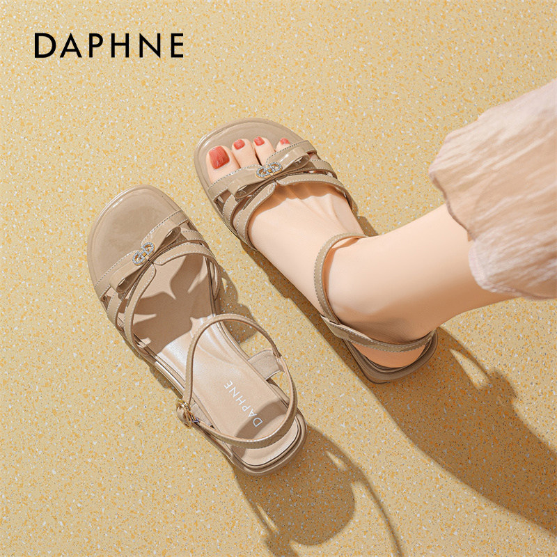达芙妮粗跟凉鞋女2026新款春夏仙女风罗马一字拖配裙子法式高跟鞋