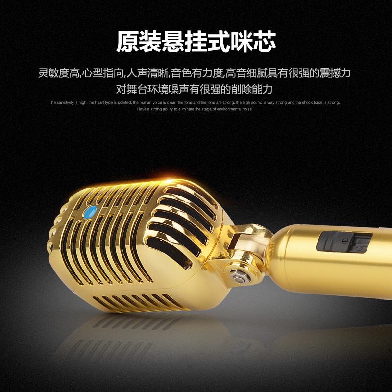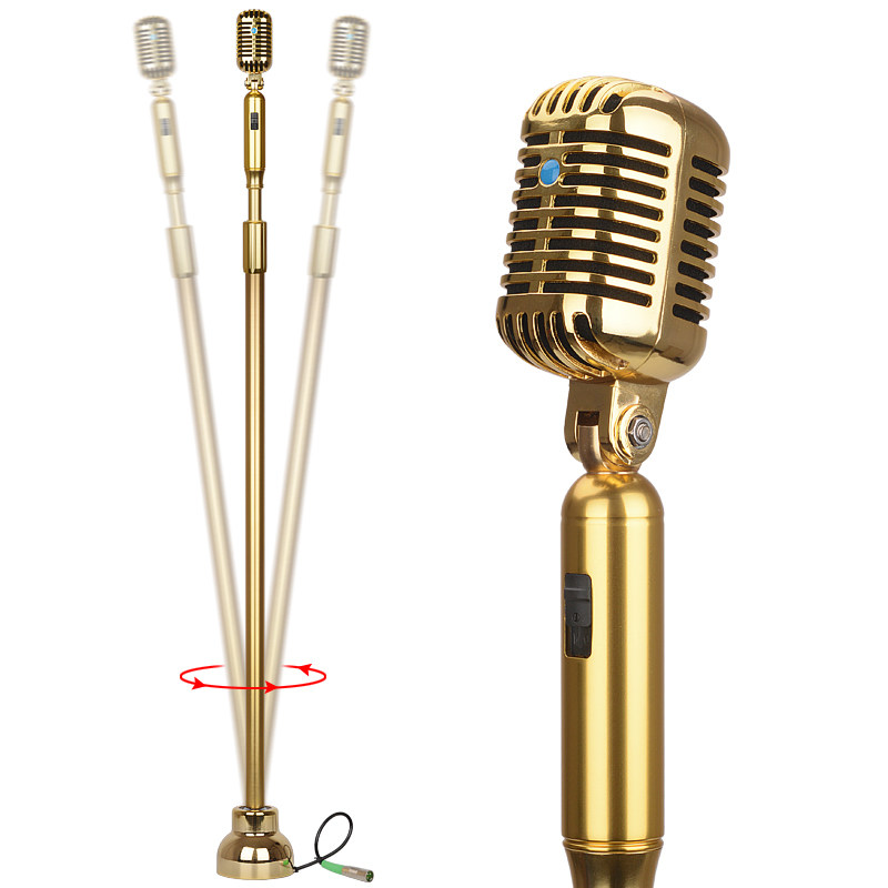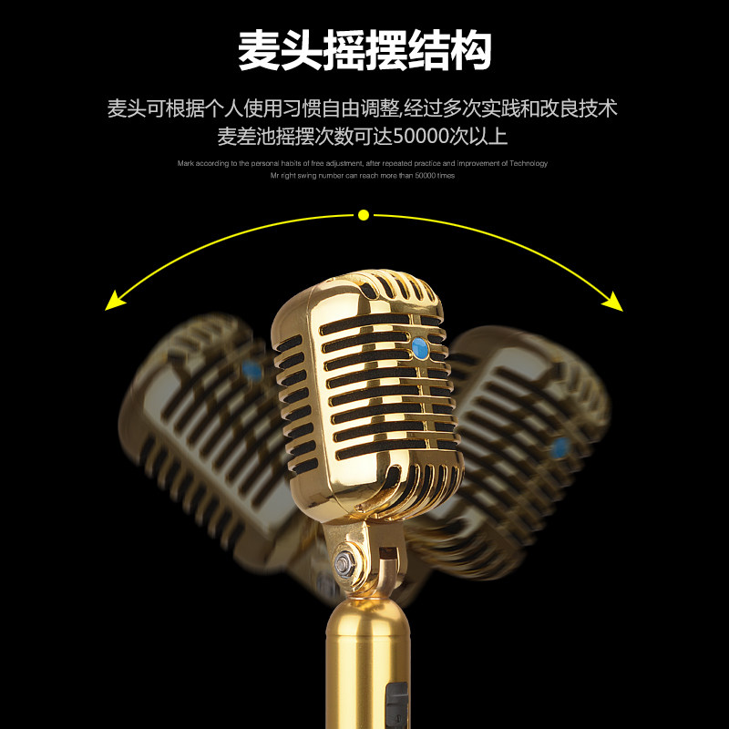 YB370金黄色复古摇摆麦克风 ktv专业落地立麦话筒 支架一体式摇麦