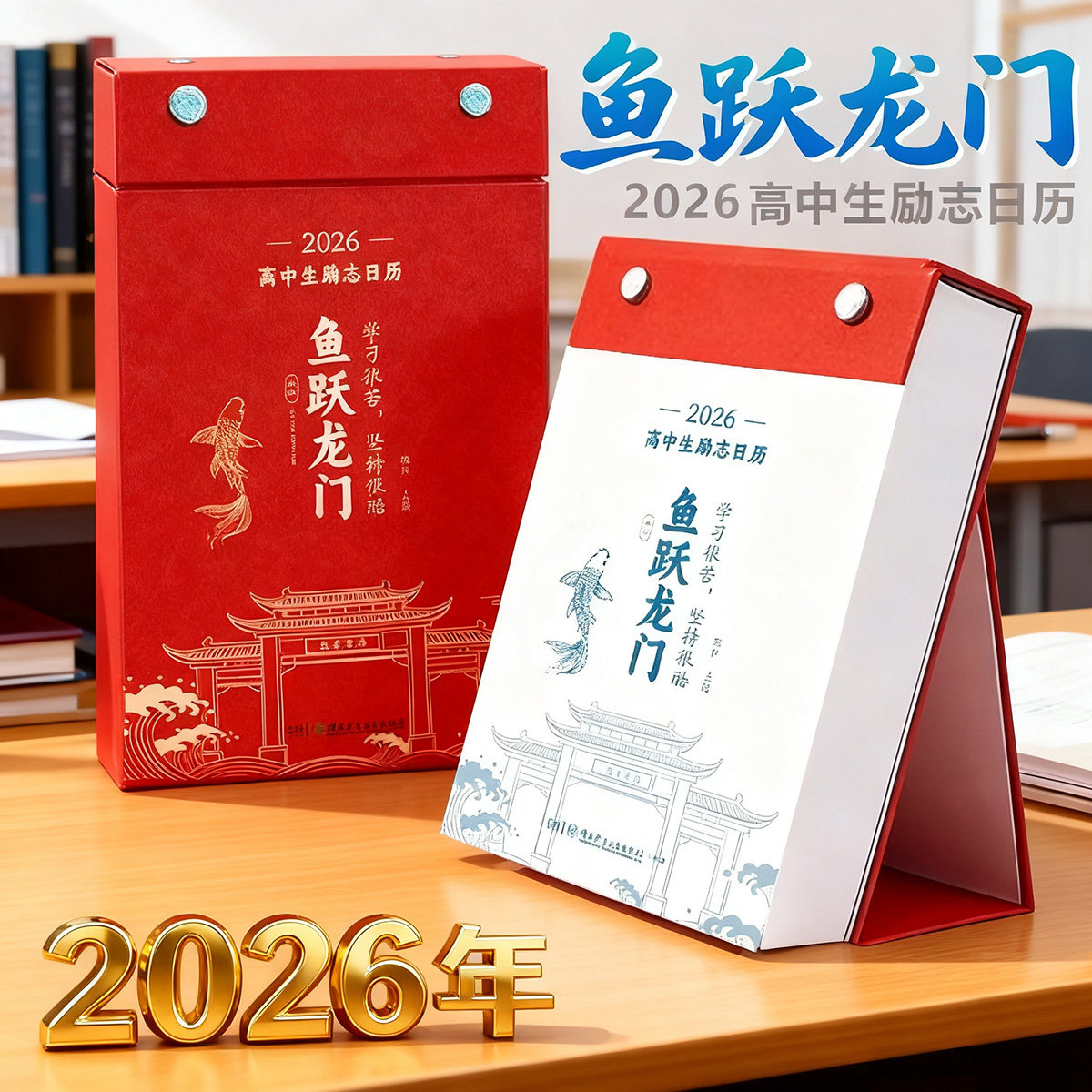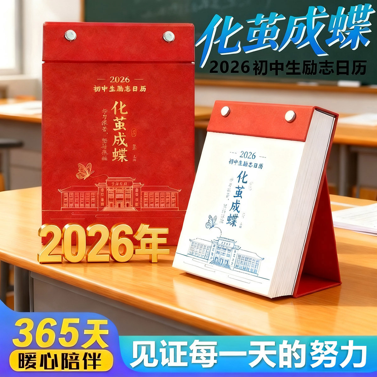 【抖音同款】2026年初中生励志台历化茧成蝶学习鼓励桌面日历【化茧成蝶+鱼跃龙门】知识点励志台历学生用品