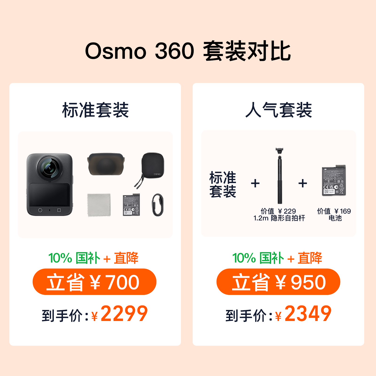 【国家补贴】大疆 Osmo 360全景运动相机8K骑行防抖vlog 105G内存