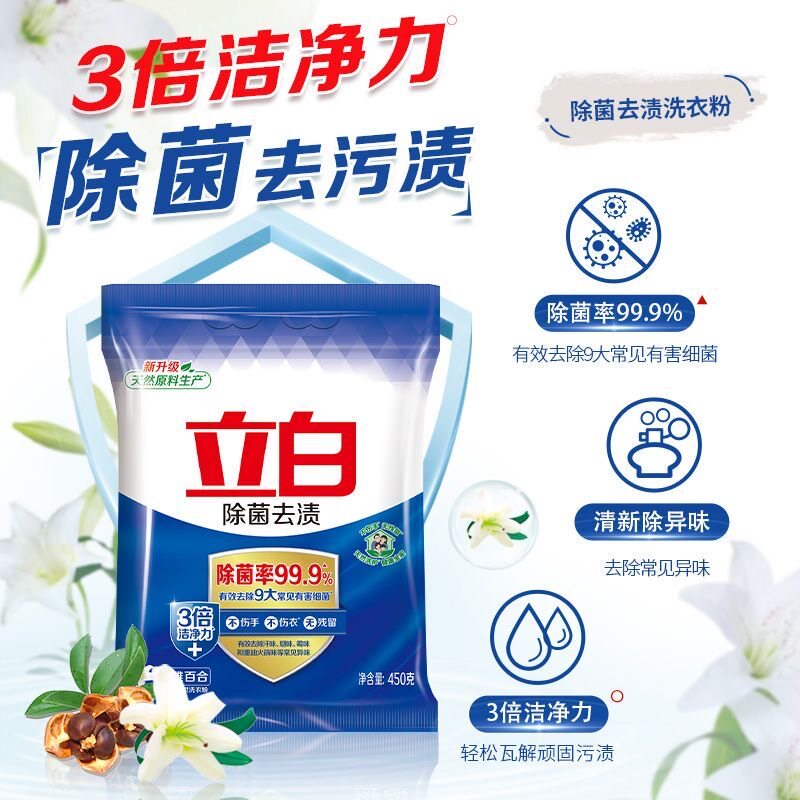 商超同款立白洗衣粉450g除菌去渍去异味洗衣服粉无磷型小袋便捷装