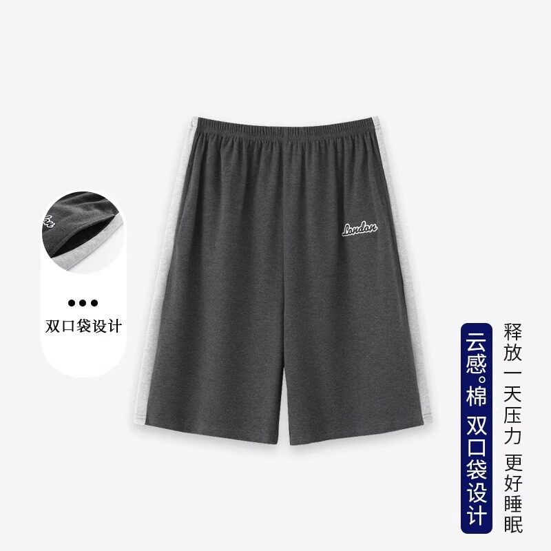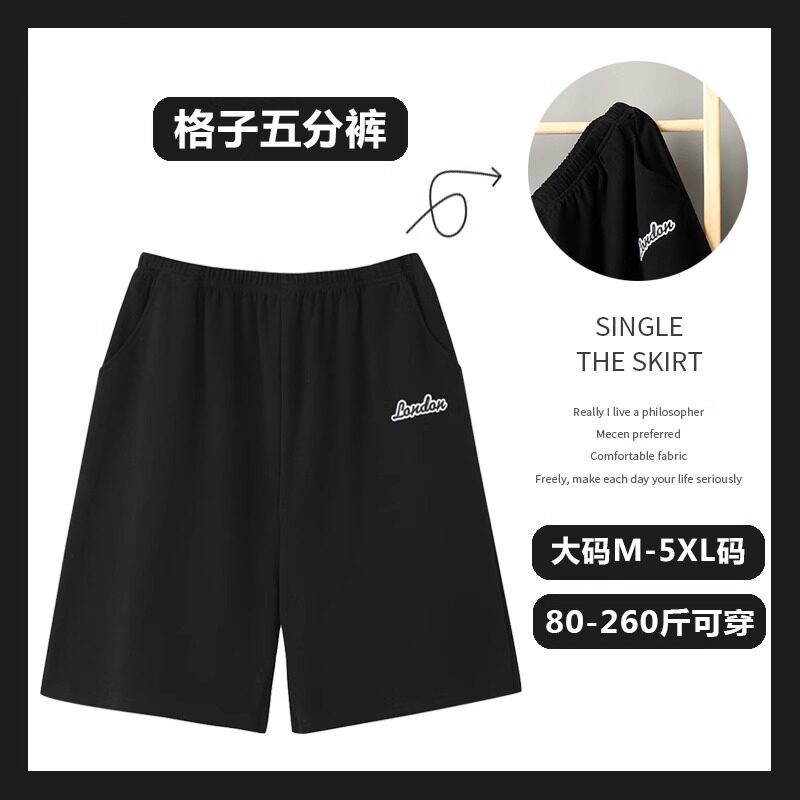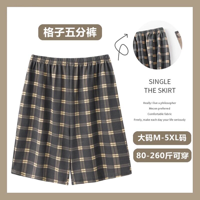 男士沙滩睡裤纯棉家居裤短裤薄款宽松外穿格子五分裤大裤衩松紧