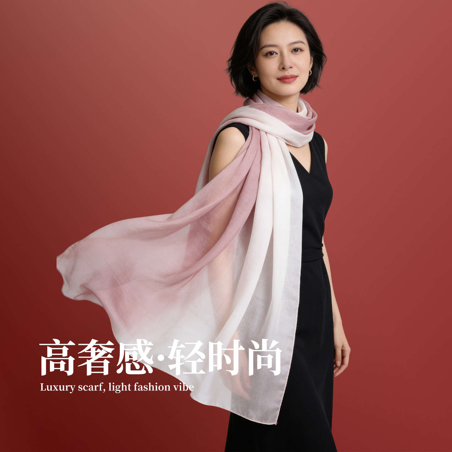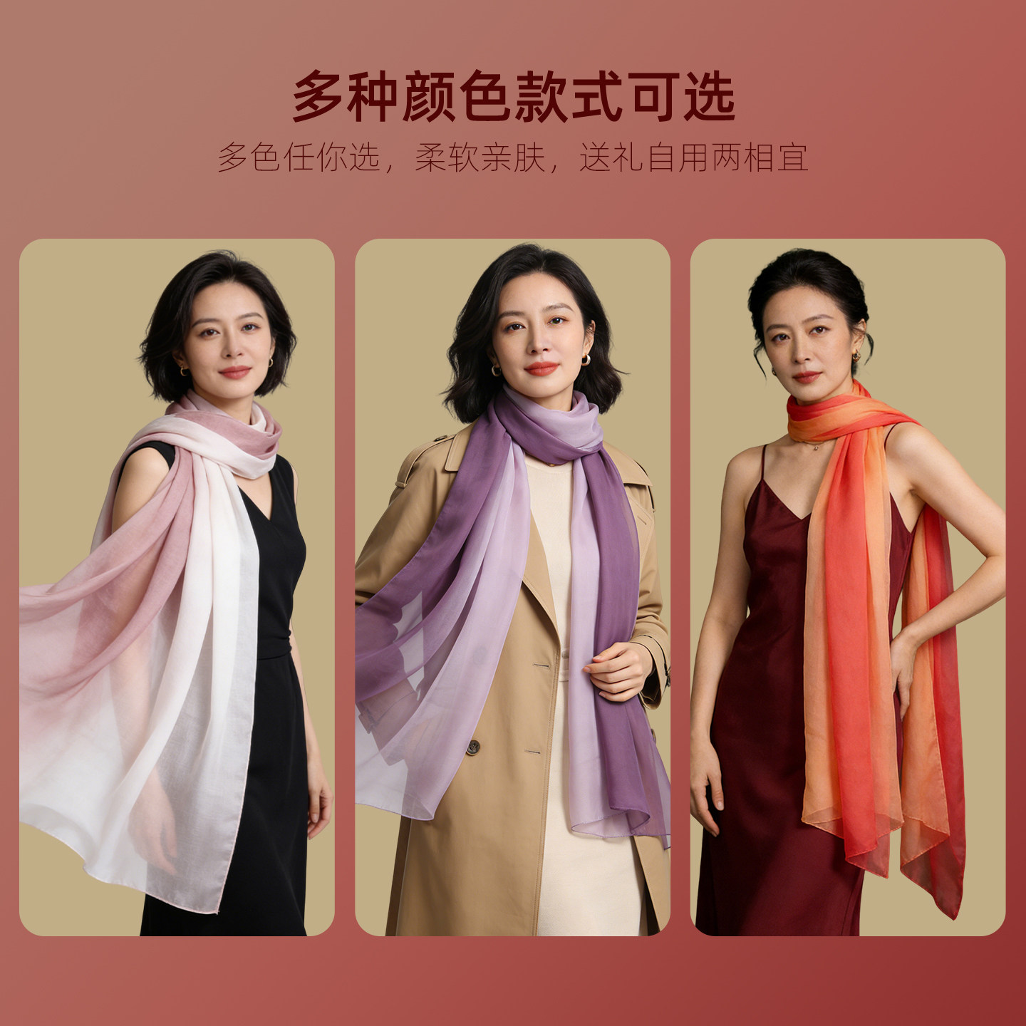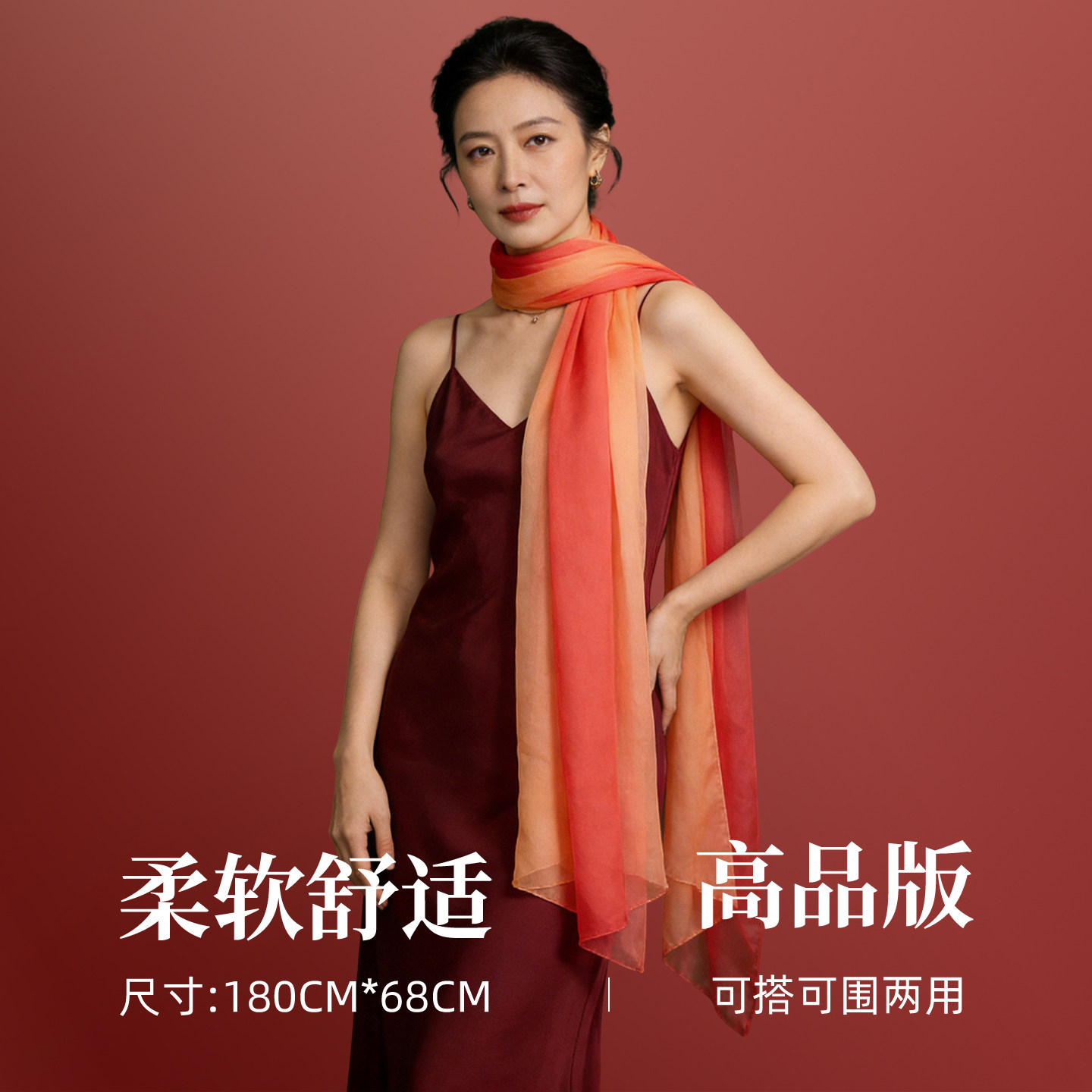 2026新款真丝丝巾桑蚕丝女士长条披肩轻奢高级紫色渐变纱巾围巾