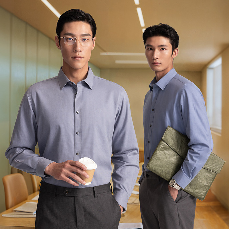 王安宇同款森马长袖衬衫男纯棉2025春秋新款通勤休闲上衣商务衬衣