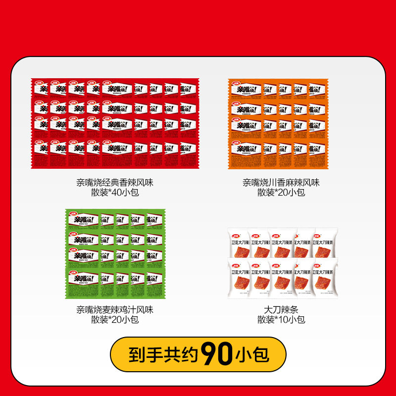 卫龙缤纷辣条礼包约1066g休闲辣味小面筋麻辣零食出游聚餐小包装