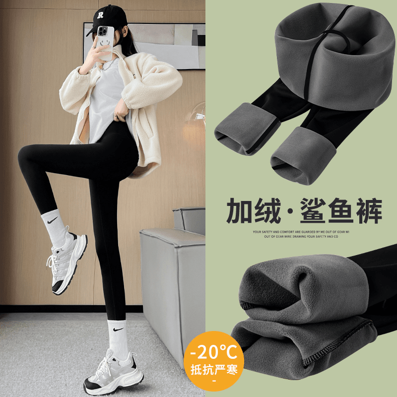 鲨鱼裤女外穿秋季高腰紧身瑜伽打底裤款薄绒灰色黑色羊羔绒加绒