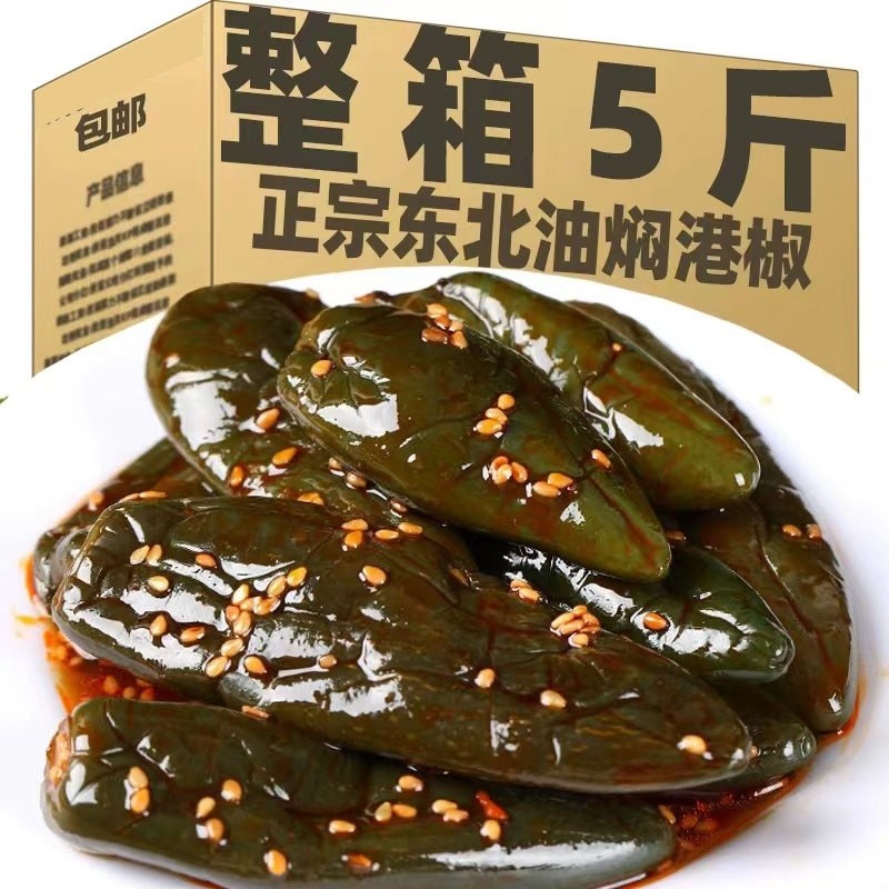 东北油焖港椒咸菜腌青辣椒贡椒酱油辣椒开 胃菜腌制泡椒肉椒下饭
