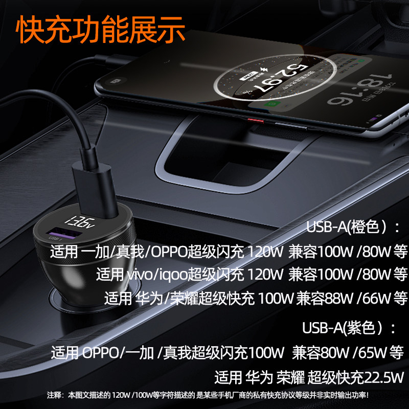 LDZM120W100W车载充电器适用荣耀苹果15华为mate60pro超级快充88w