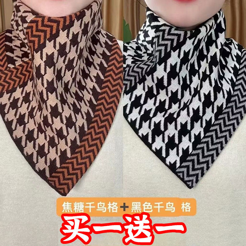千格鸟三角围巾围脖护颈假领套头脖套保暖男女三角巾秋冬千鸟格