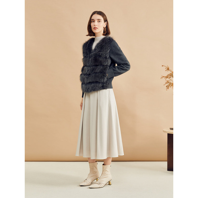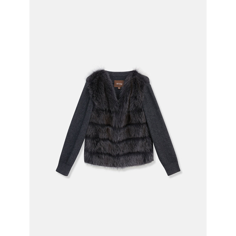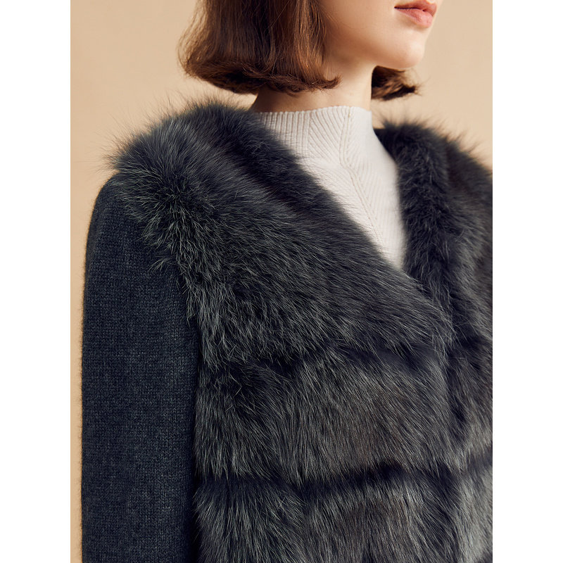 YINER音儿专选女装冬季时尚短款假两件狐狸毛拼接兔毛皮草外套