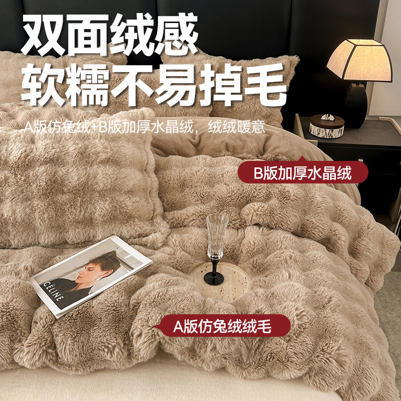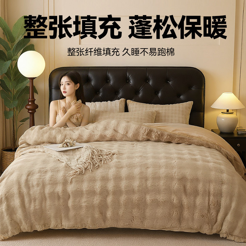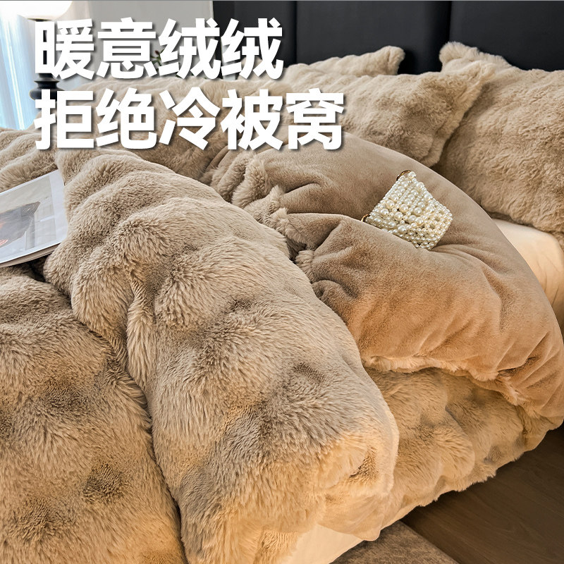 【直播专享】仿獭兔毛绒被子被芯被套四件套可拆洗冬天加厚绒冬被