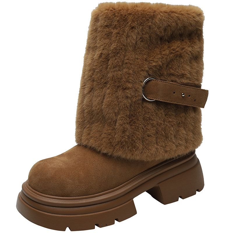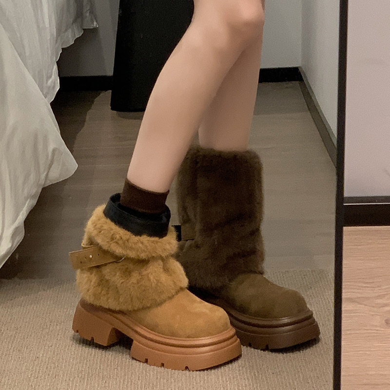 厚底雪地靴女款2025冬季新款中筒靴子洋气雪地棉鞋加绒女鞋子高跟