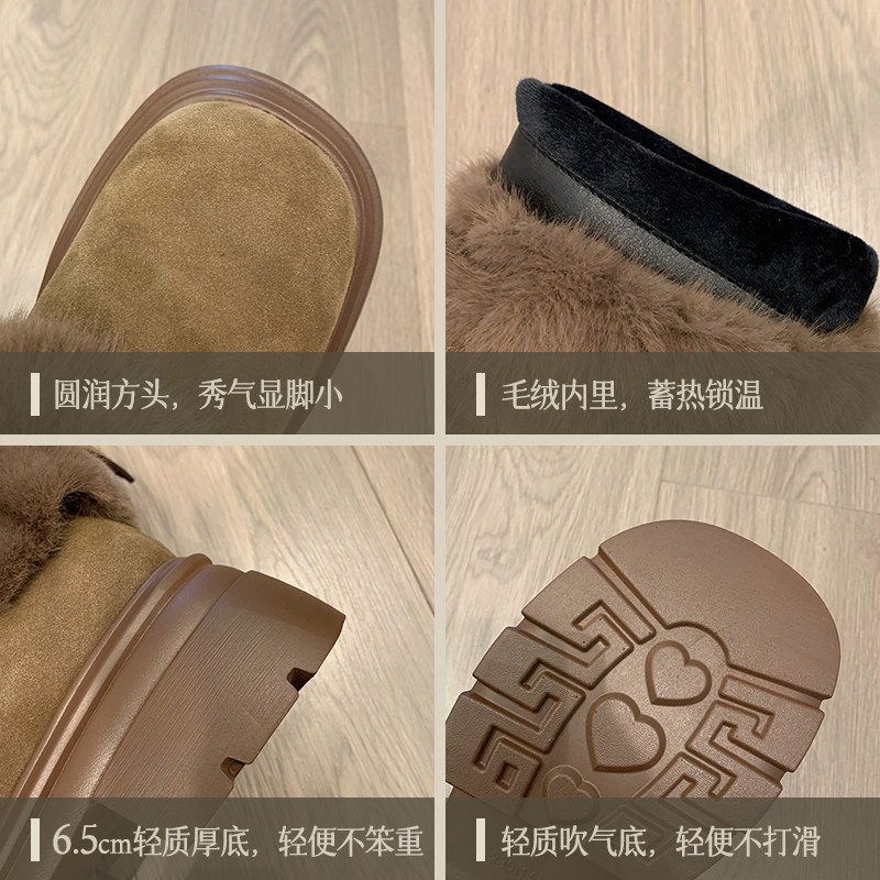 低帮厚底雪地靴女2025新款冬季懒人一脚蹬毛毛棉鞋加绒加厚女鞋子