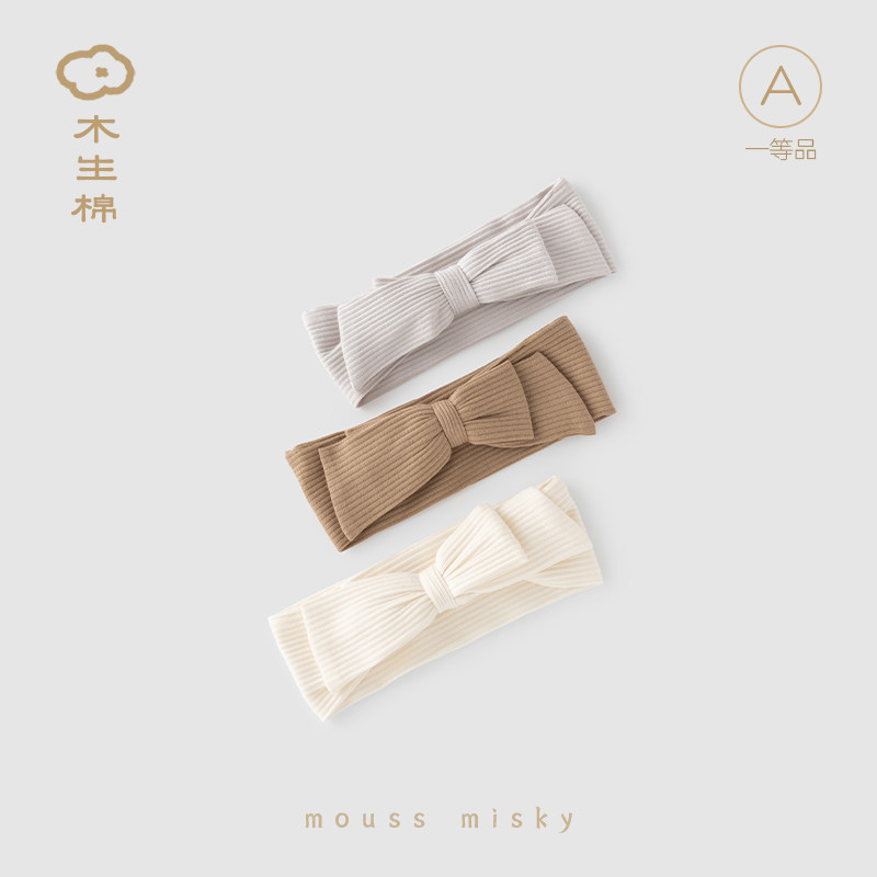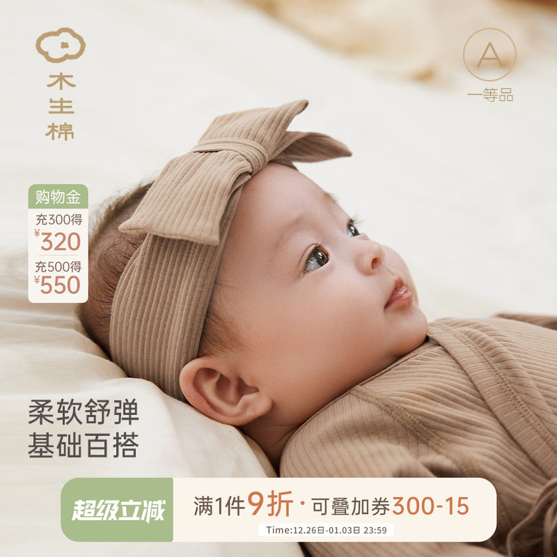 木生棉新生儿蝴蝶结发带春秋季款婴儿护头发饰宝宝护囟门弹力发带