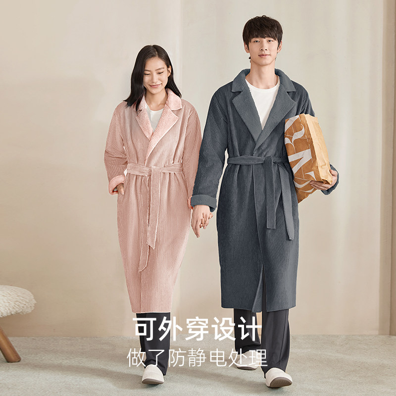 觅丝女士冬天加厚加绒蓄热睡袍珊瑚绒保暖睡衣男情侣家居服浴袍