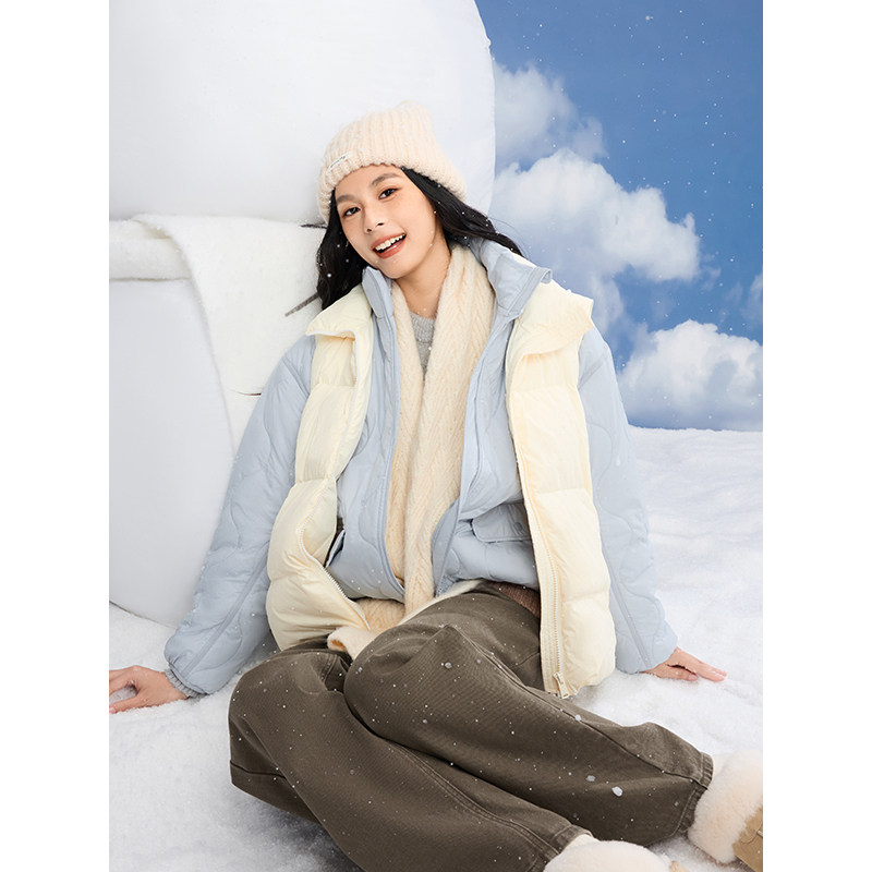 骆驼女装羽绒马甲2025秋冬新款白色轻薄短款外穿保暖背心男女外套