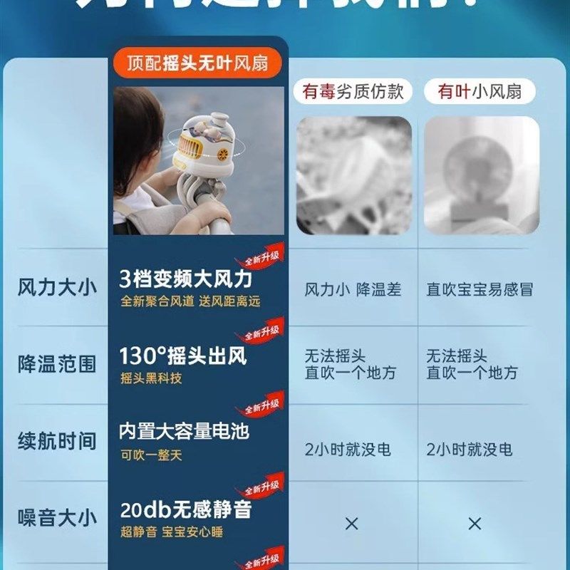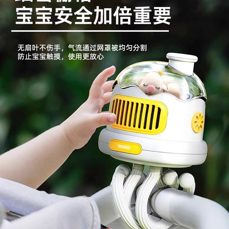 婴儿推车风扇小型八爪鱼宝宝推车驱蚊风扇便捷摇头充电静音婴儿床
