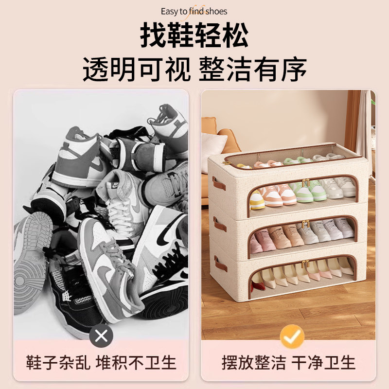 鞋盒鞋子收纳神器省空间鞋架鞋柜放靴子鞋托床底可折叠收纳盒透明