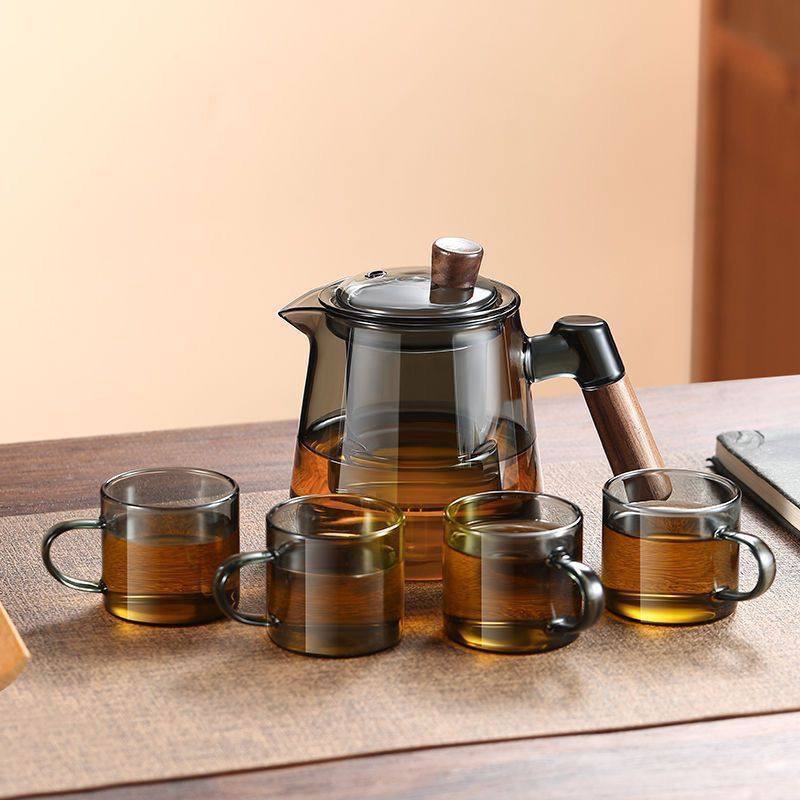 耐高温加厚玻璃泡茶壶家用花茶壶功夫茶具套装电陶炉煮茶壶侧把