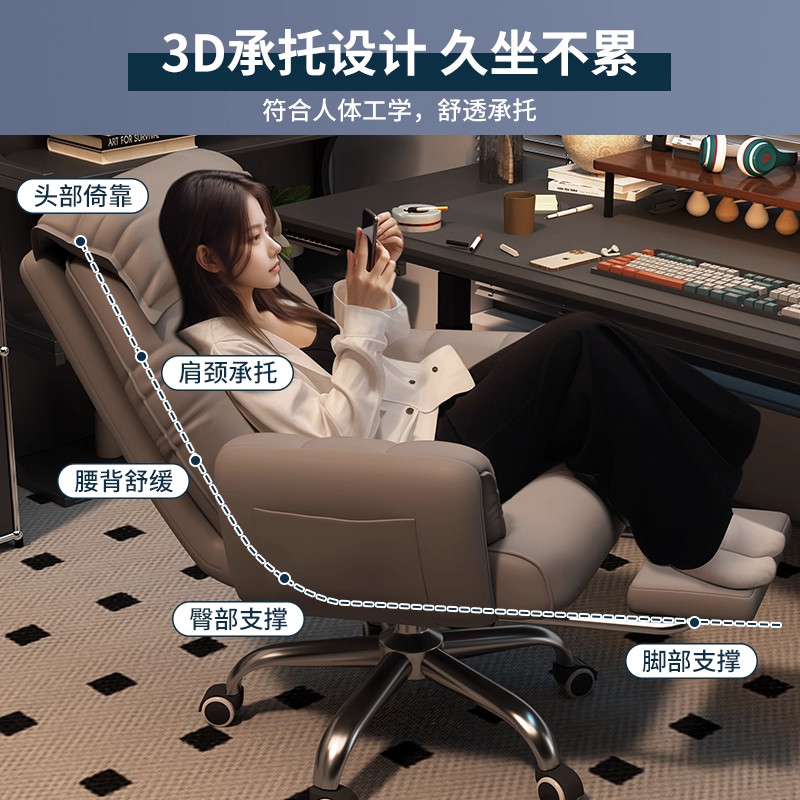 老板椅可躺猫爪皮办公椅舒适电脑椅家用懒人久坐人体工学真皮椅子