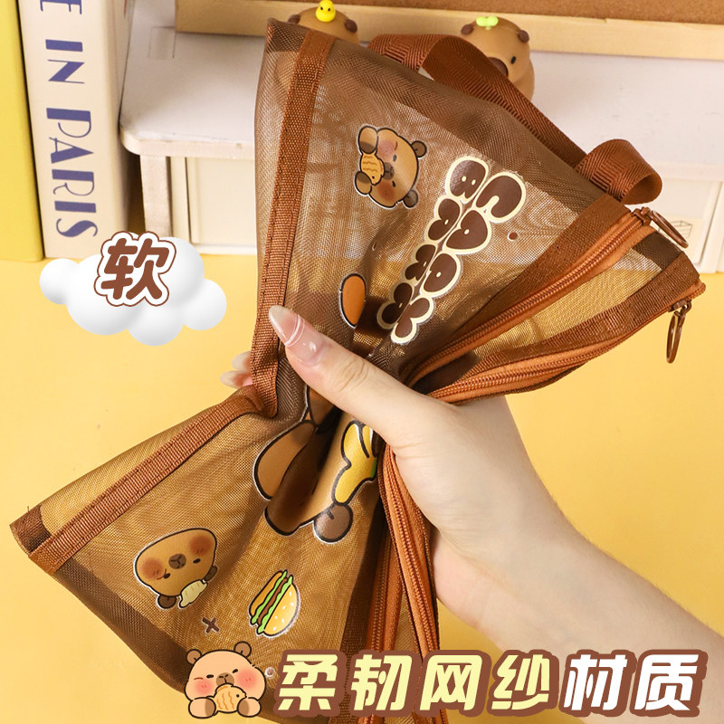 卡皮巴拉文件袋拉链式收纳袋小学生专用透明多层分类袋办公资料袋文具整理袋作业课本书本收纳袋网纱笔袋加厚