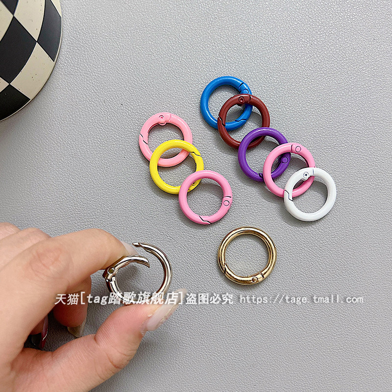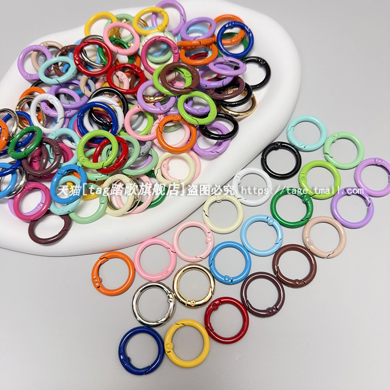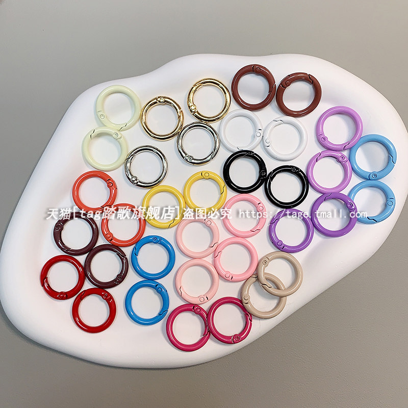 彩色烤漆弹簧圆环扣钥匙扣包包挂扣DIY精致挂件开口圈金属烤漆弹簧箱包包车挂圈手机壳挂绳挂件材料公仔圆环