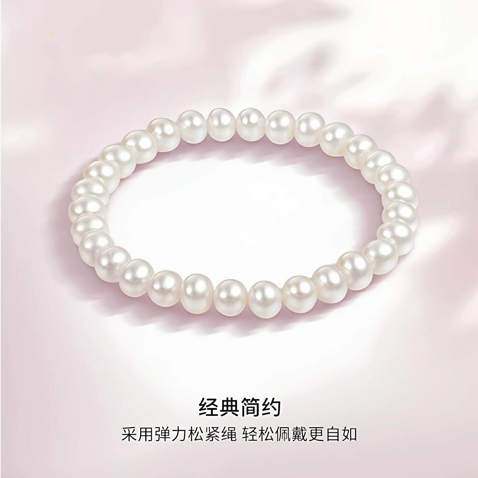 梵宝雅阁诸暨淡水近圆7-8mm珍珠手串简约风百搭手链轻奢节日礼物