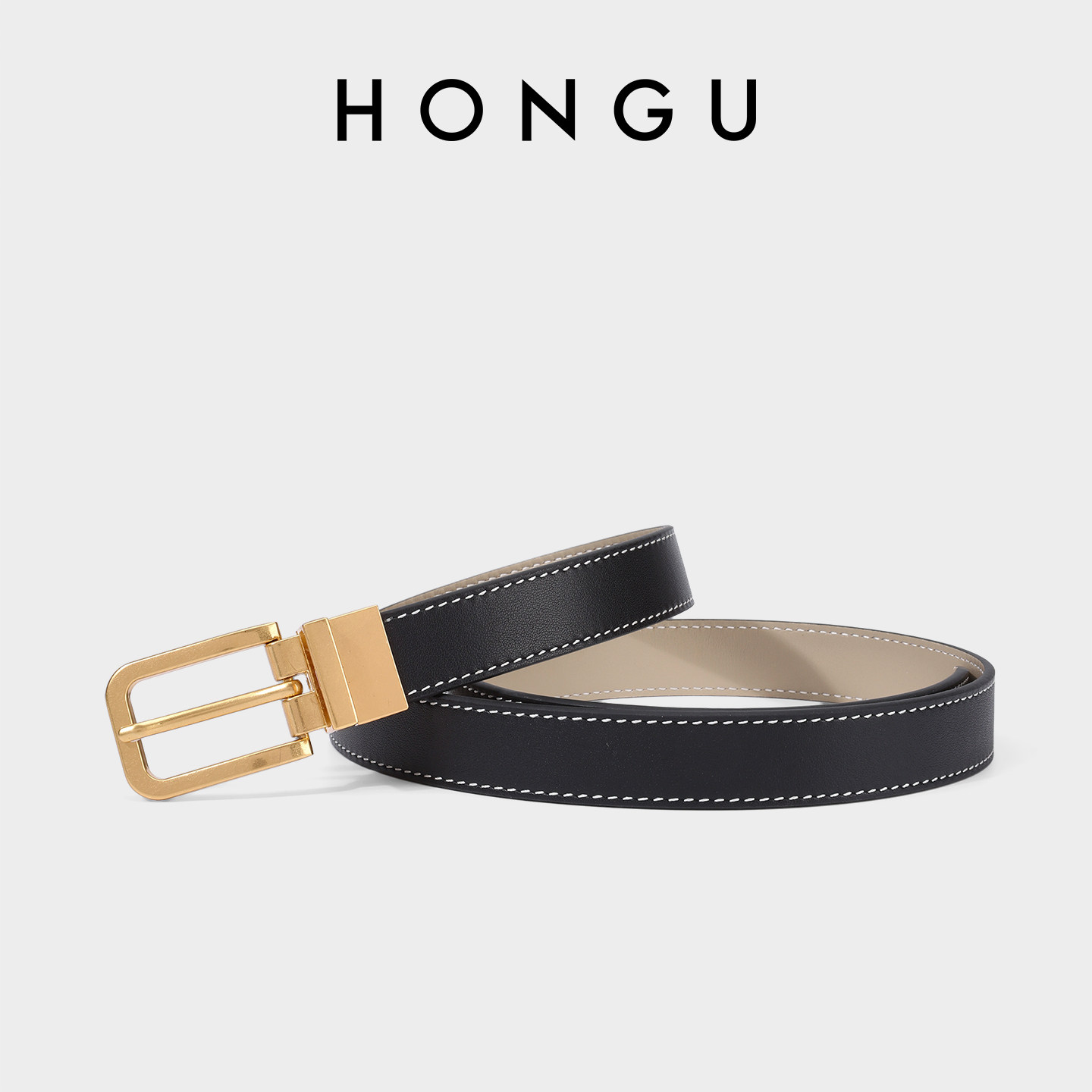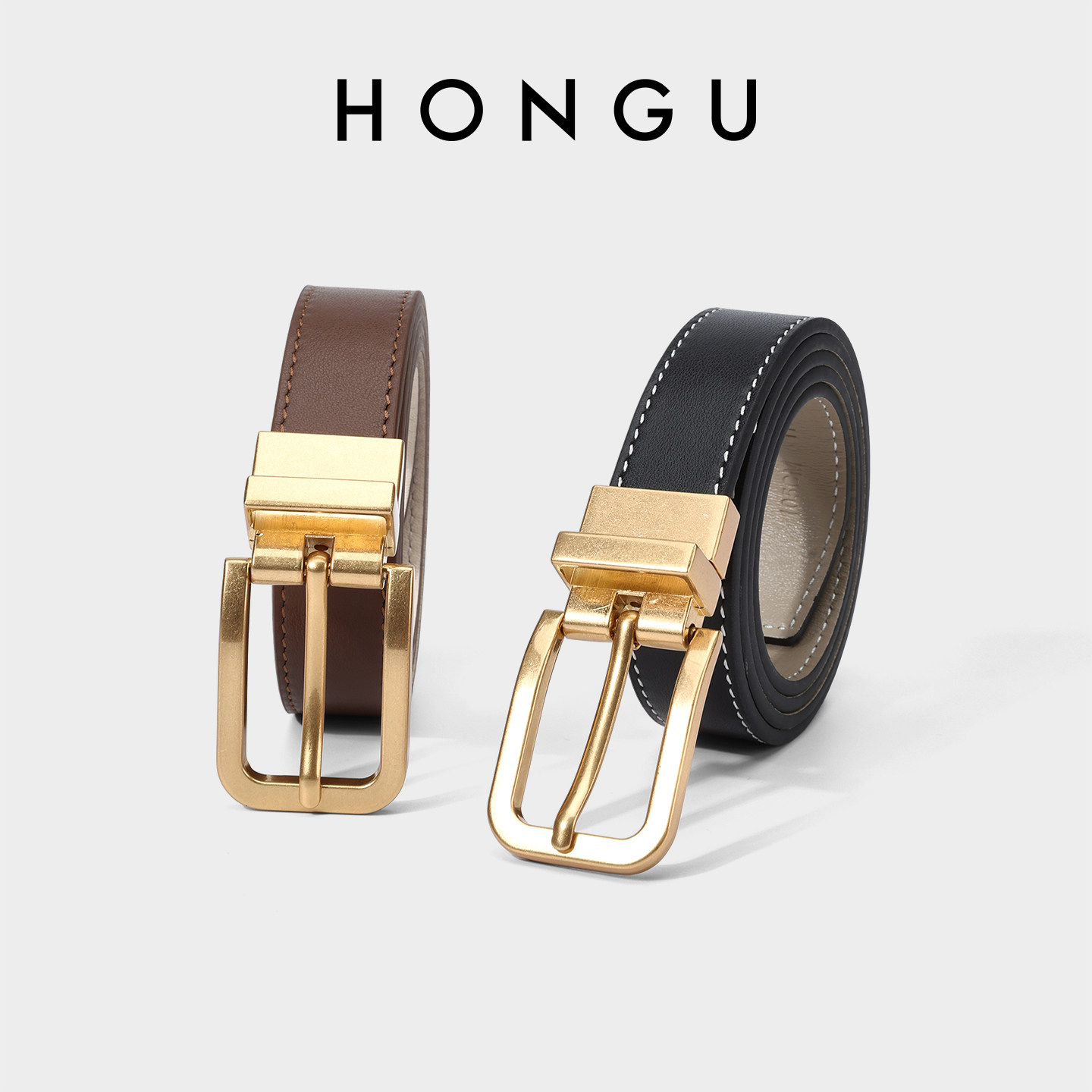 红谷新款女士皮带真皮针扣细腰带休闲时尚简约百搭装饰牛仔裤带女