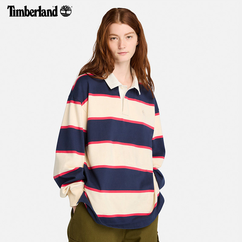 Timberland添柏岚官方男款橄榄球长袖POLO衫秋冬新款宽松|A2Q4T