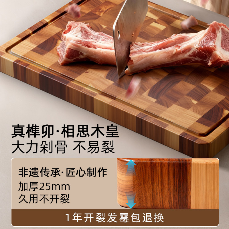 艾仕可进口相思木榫卯切菜板家用无漆无蜡案板揉面板实木砧板粘板