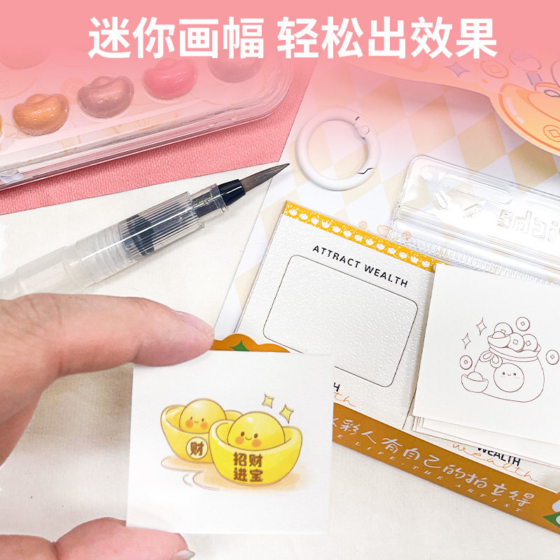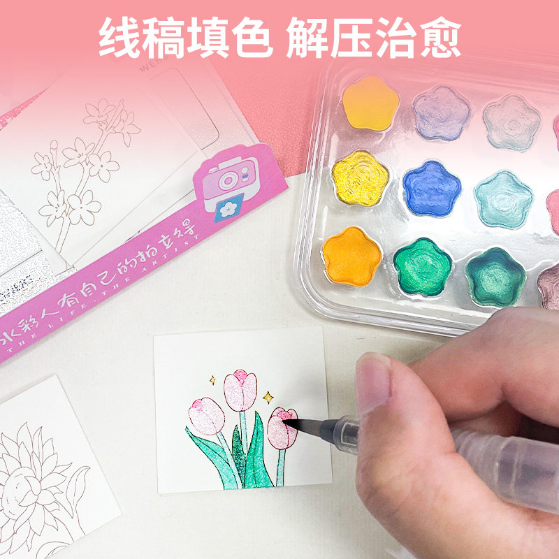 飞乐鸟萌粒15色珠光水彩颜料写生便携套装 迷你胶片卡涂色益智玩具爆闪新手学生美术绘画美甲金银固体可水洗