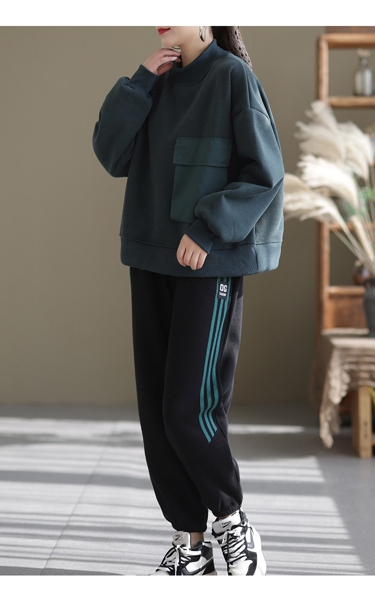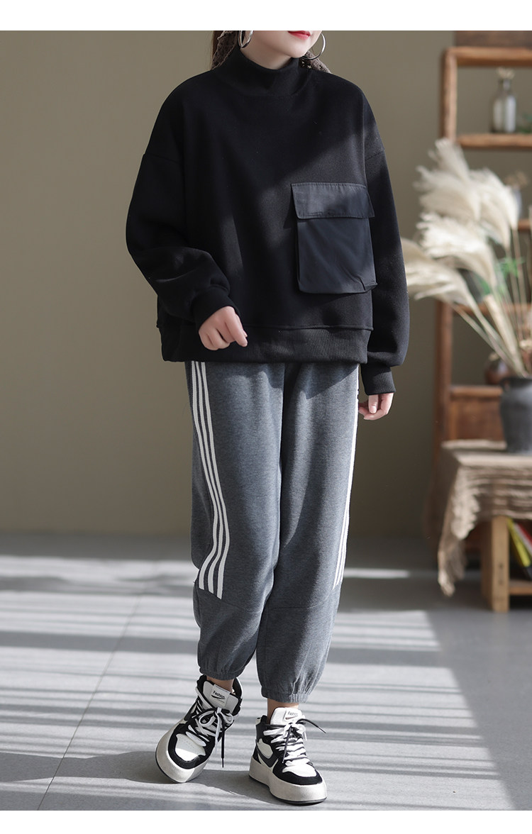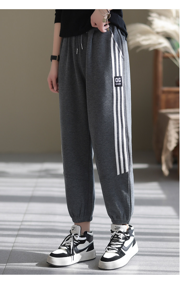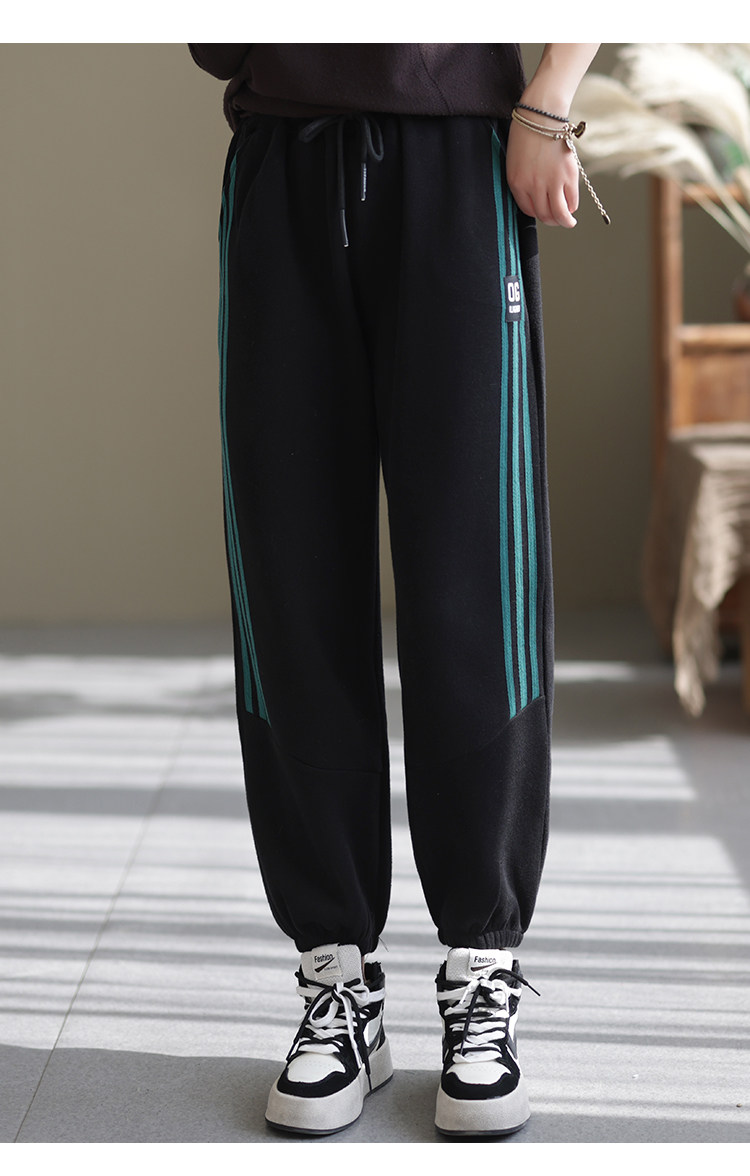 咖咪羽加绒卫裤女冬2021宽松复古加厚拼接简约通勤长裤女装哈伦裤