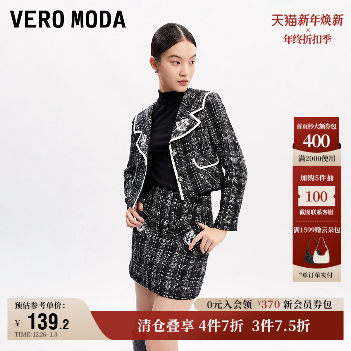 Vero Moda奥莱短外套女秋冬清仓航海风H版型翻领格纹短款上衣流行