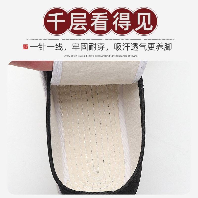 老北京布鞋男款春秋透气吸汗手工千层底中老年爸爸一脚蹬休闲布鞋
