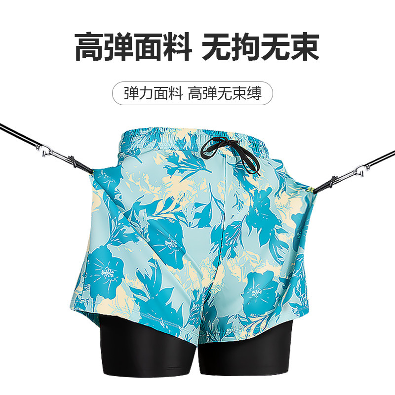 男士泳裤成人新款双层高弹防尴尬宽松时尚速干平角大码沙滩裤温泉