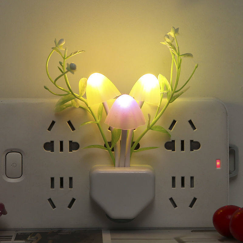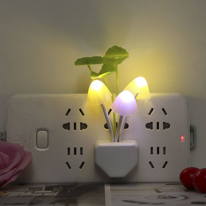 小夜灯插电感应灯夜光灯卧室led灯具床头灯儿童壁灯节能灯蘑菇