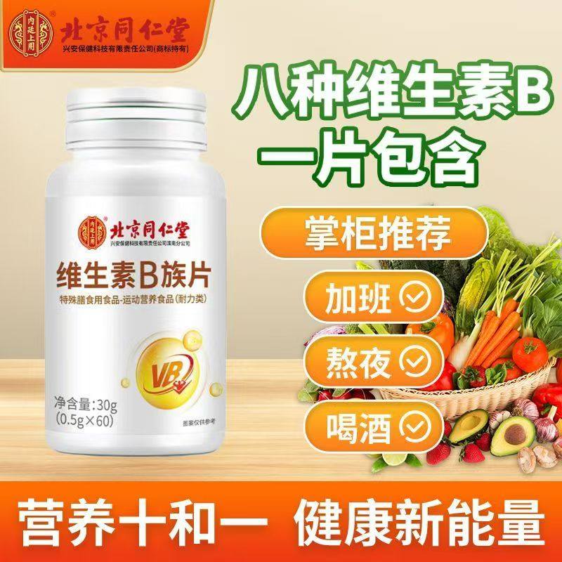 同仁堂维生素B族片复合多种维生素叶酸烟酸成人b1b2b6b12官方正品