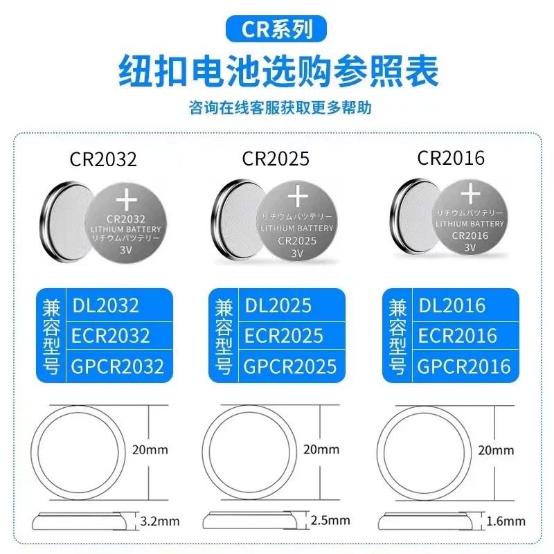 纽扣电池手表遥控器玩具车钥匙专用CR2032/CR2025/CR2016