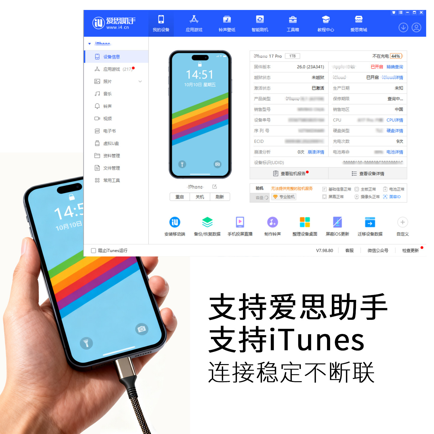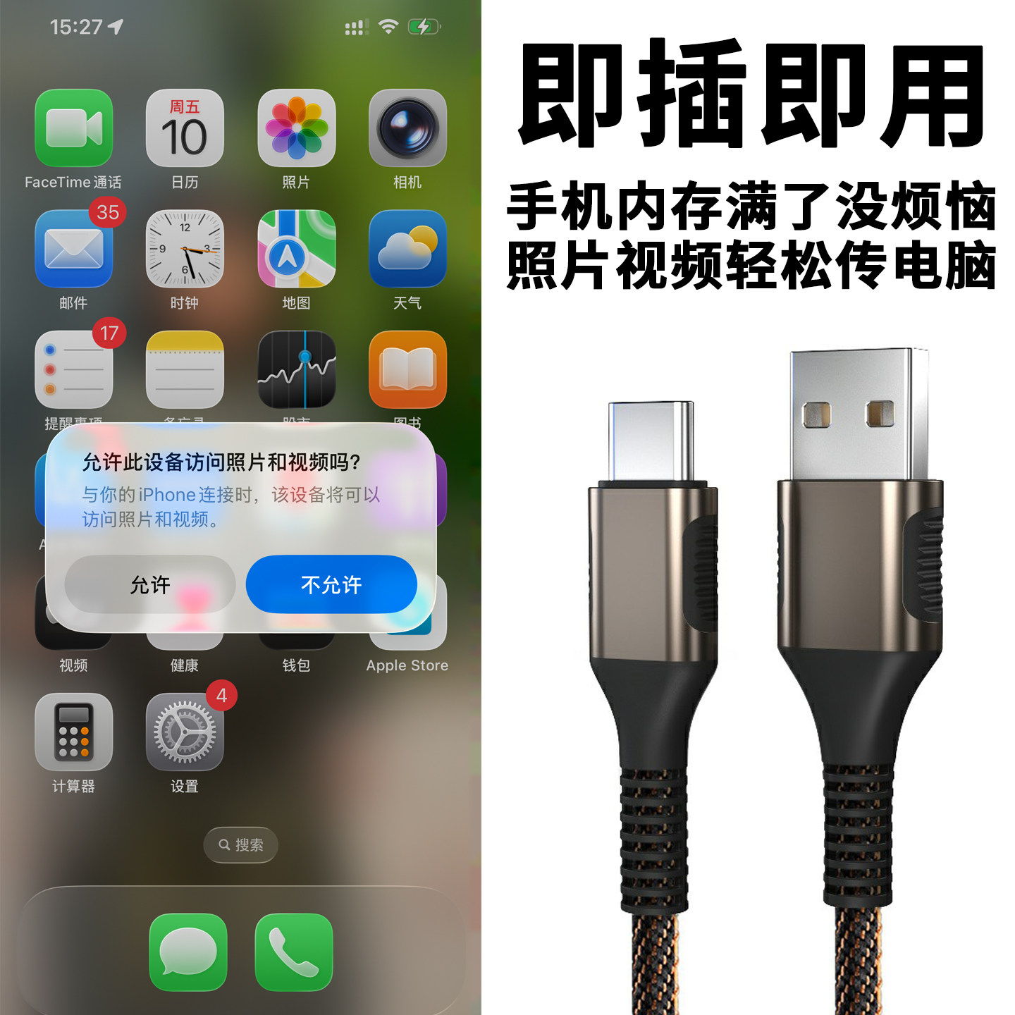 井拓 适用苹果手机连电脑传照片导视频USB数据线适用iphone17pro连系统刷机传输线爱思助手itunes下载充电线