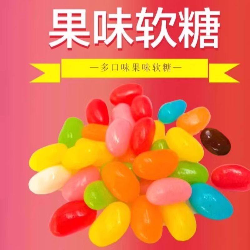 qq糖酸果豆吉利豆七彩水果软糖500g/袋喜糖糖果零食彩虹糖