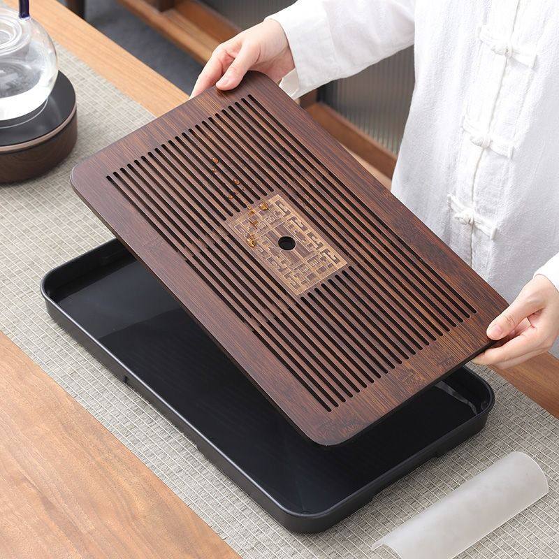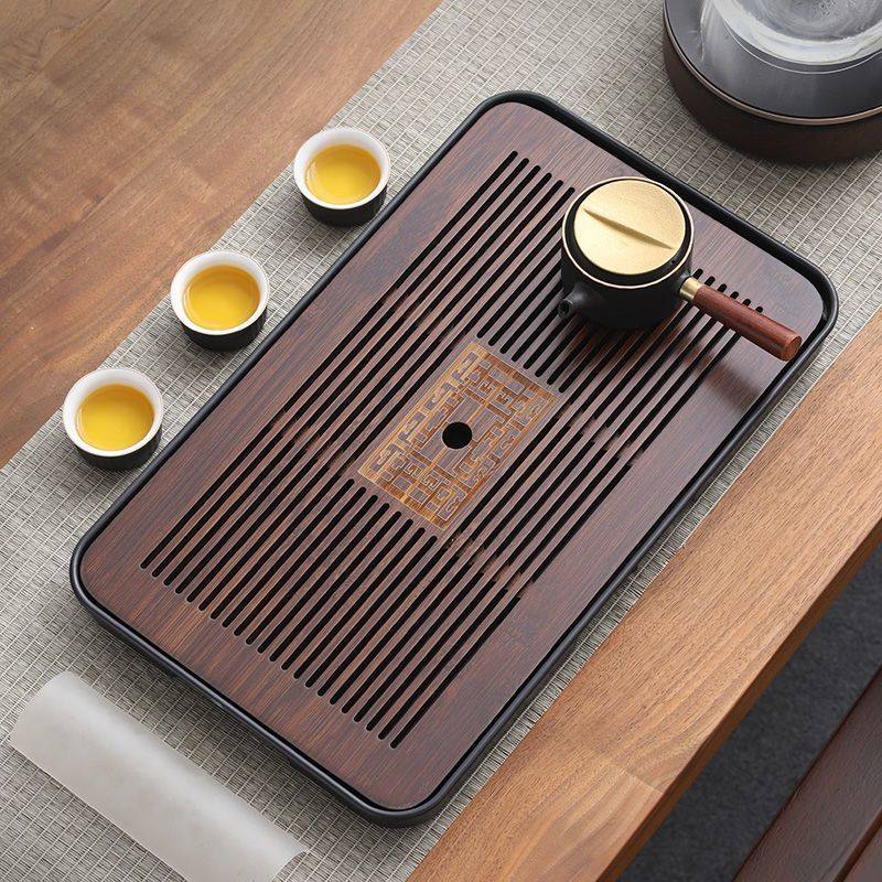 茶盘家用轻奢现代小型沥储水式茶台功夫茶具竹茶海简约干泡台托盘
