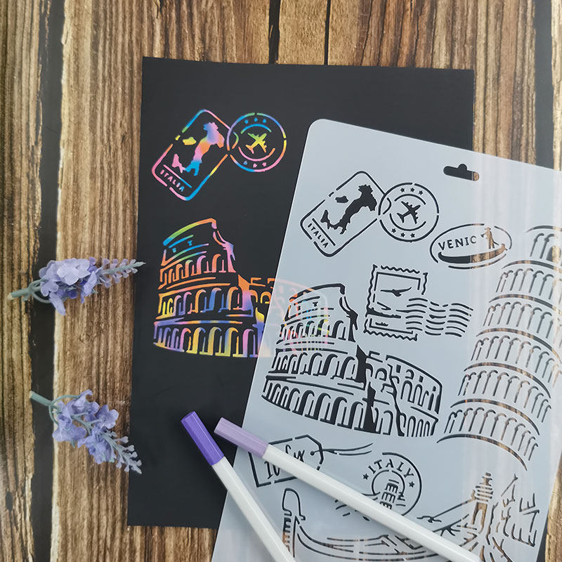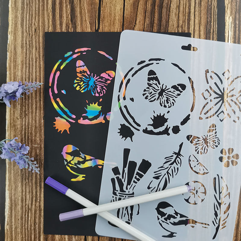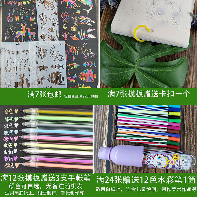 镂空手帐印花绘画模板手账图案绘图模板尺diy相册花边尺画画模版