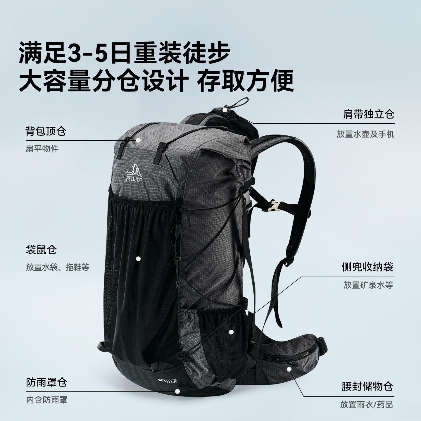 【岩石】伯希和户外登山包旅行轻量化60L大容量专业徒步双肩背包