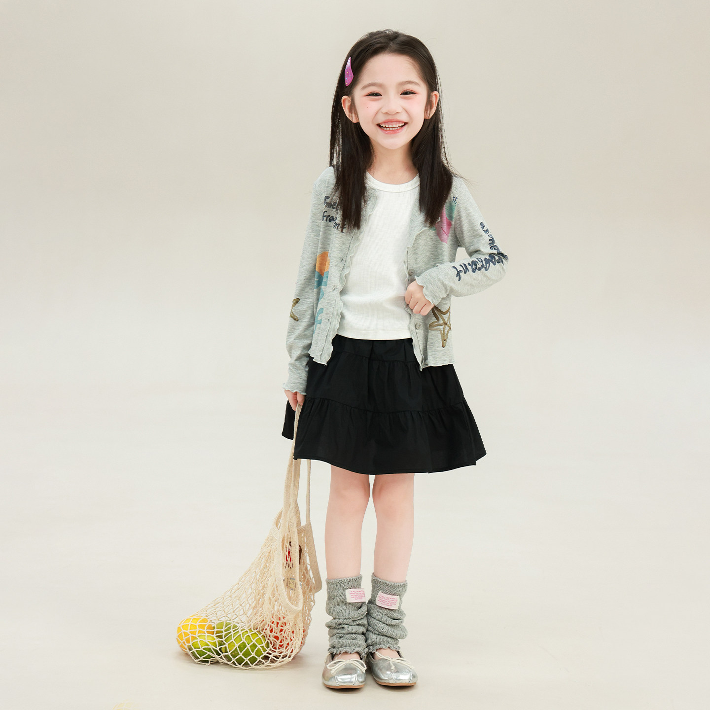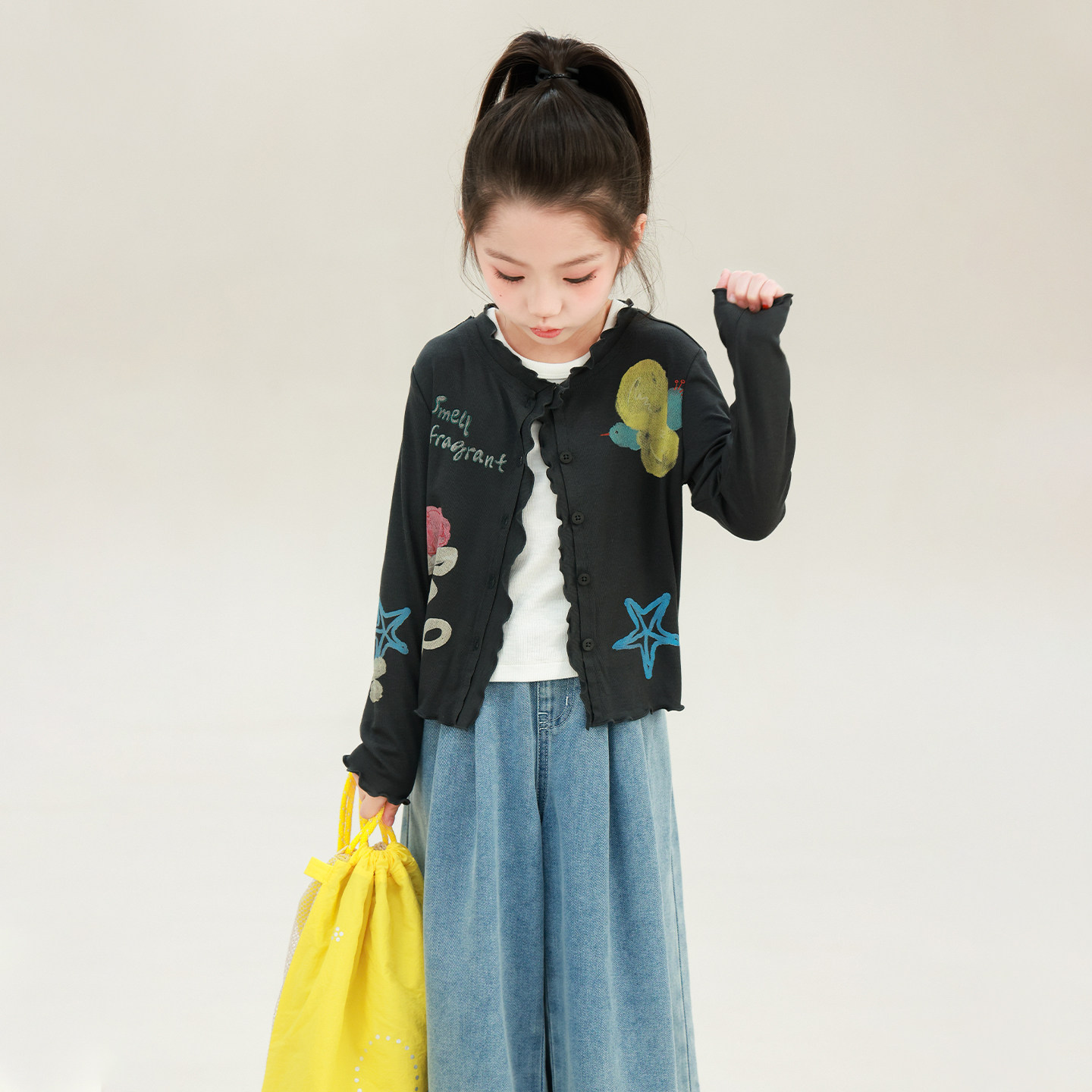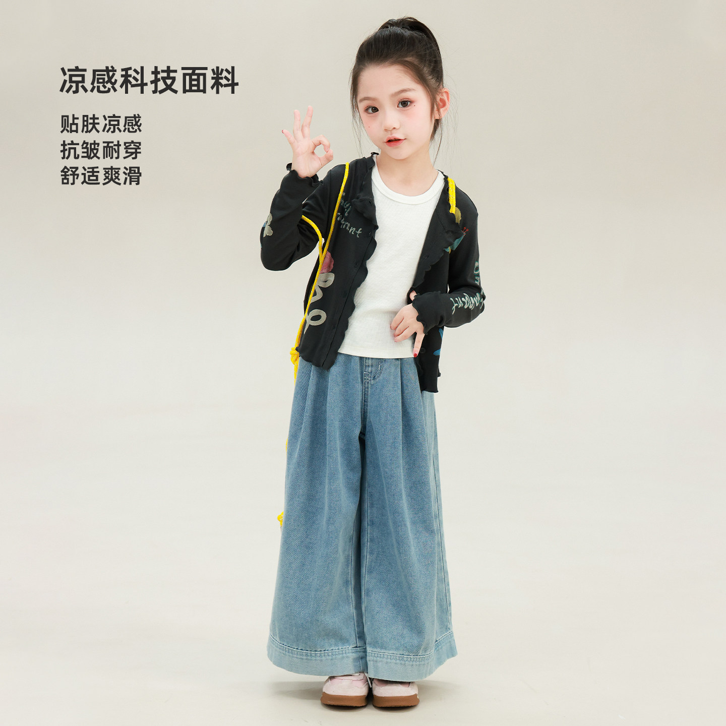 大耳象女童印花花边开衫2026夏季新款宝儿凉感休闲百搭薄空调衫