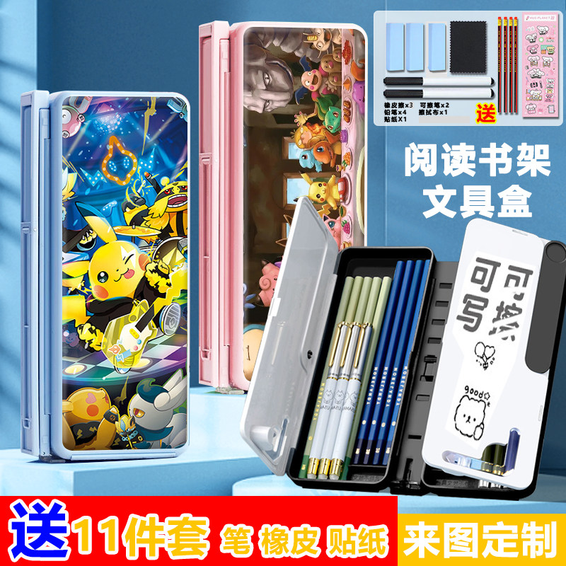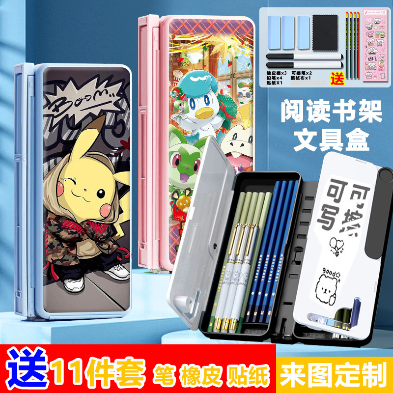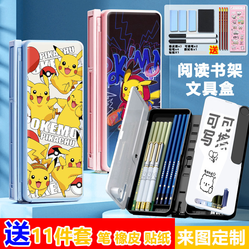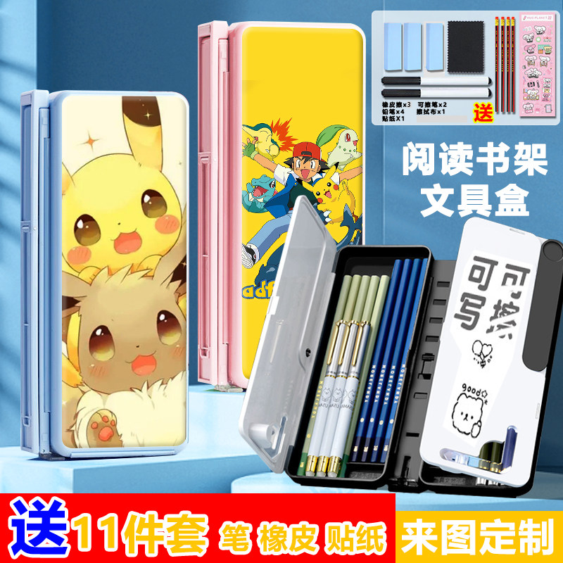神奇宝贝皮卡丘多功能笔盒阅读书架便携式文具盒学习收纳铅笔盒