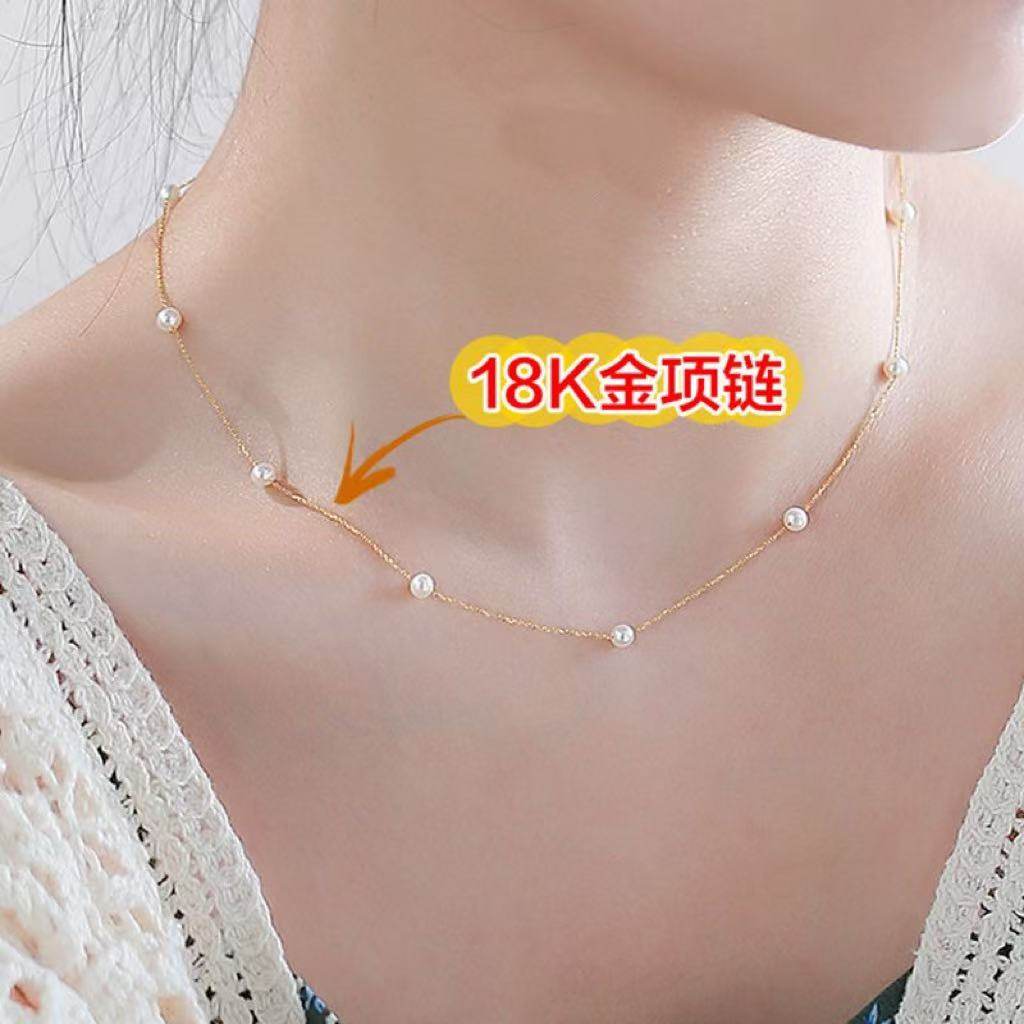 诸暨淡水珍珠18K金满天星项链女经典气质锁骨链轻奢高级节日礼物